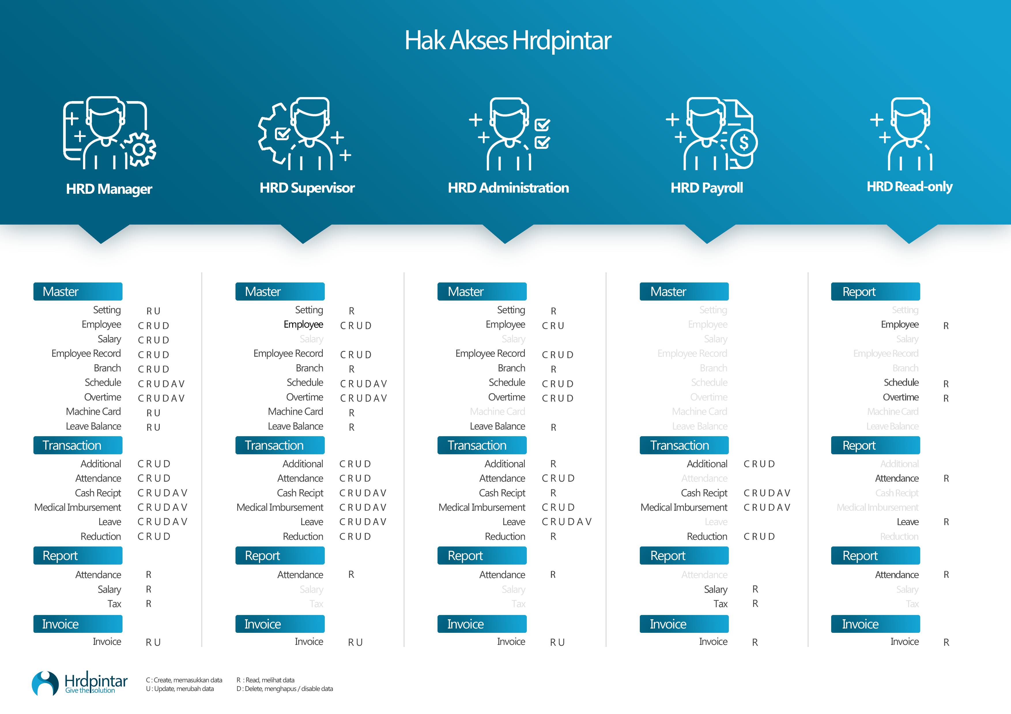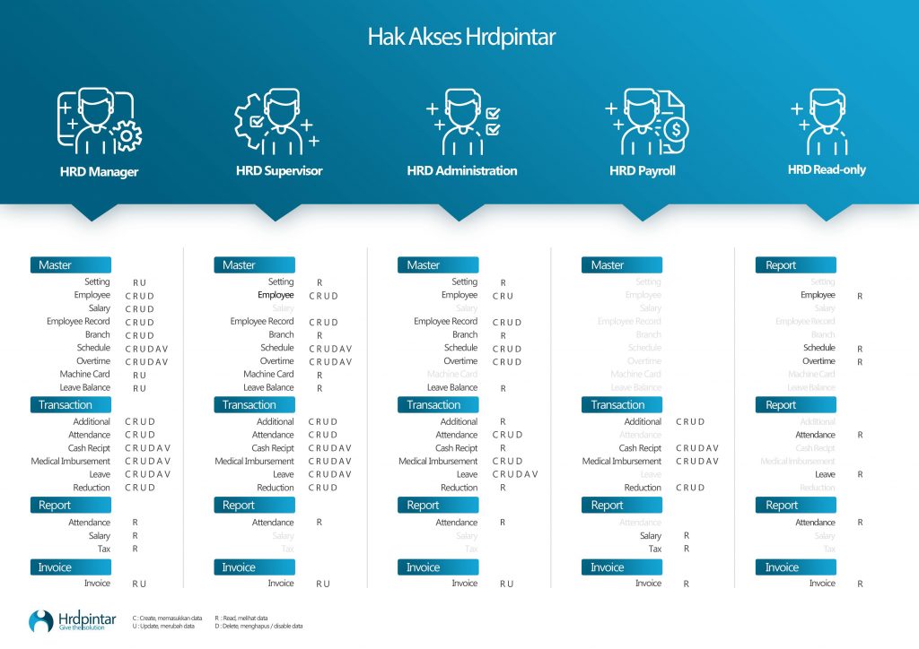 Berikut adalah rincian pembagian level / hak akses aplikasi Hrdpintar :